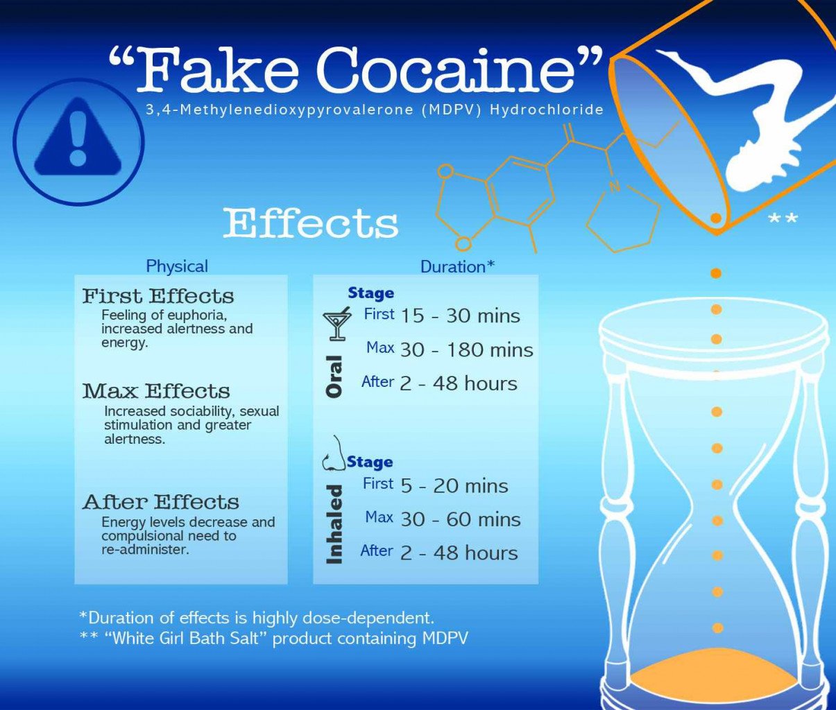 Χαρακτηριστική, και ανατριχιαστική ,είναι η δήλωση του Διευθυντή του Κέντρου Δηλητηριάσεων της Λουιζιάνα Dr. Ryan για την νευροψυχιατρική δράση των κρυστάλλων. "Πρόκειται για το χειρότερο ναρκωτικό που πέρασε από τα Κέντρα Τοξικολογίας τουλάχιστον τα τελευταία 20 χρόνια. Με το lsd μπορεί να βλέπει κανείς ροζ ελέφαντες, αλλά με τα άλατα βλέπεις δαίμονες, εξωγήινους, τον Σούπερμαν, και την παράνοια σε live..."