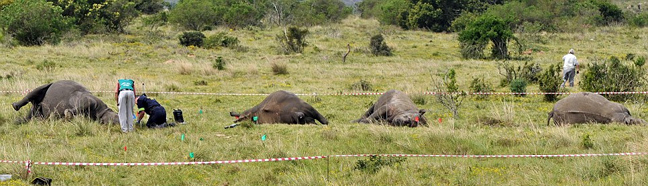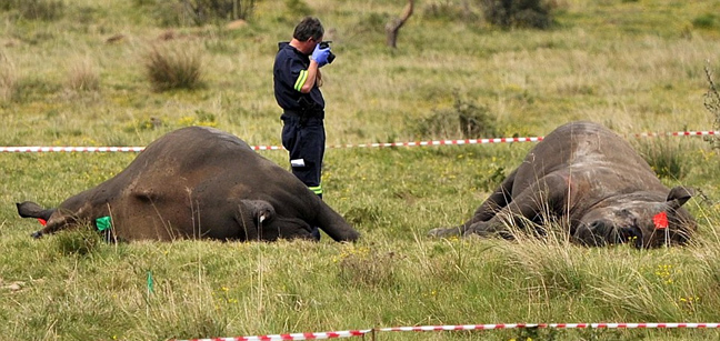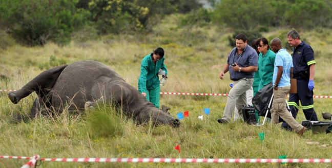 Πιστεύεται πως οι ρινόκεροι- ένα 28χρονο θηλυκό, ένα 8χρονο θηλυκό που εγκυμονούσε και δύο αρσενικά 3 και 8 ετών- ακινητοποιήθηκαν με δηλητηριασμένα βέλη πριν το κέρατό τους αφαιρεθεί χειρουργικά.