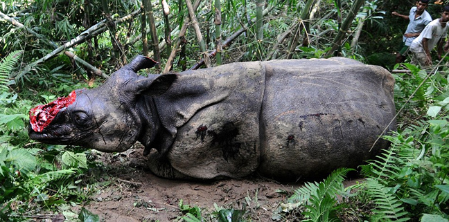 Δύο από τα ζώα υπέκυψαν, ανάμεσά τους ένα θηλυκό που βρέθηκε φρικτά ακρωτηριασμένο και ζωντανό (!) στο εθνικό πάρκο Kaziranga.